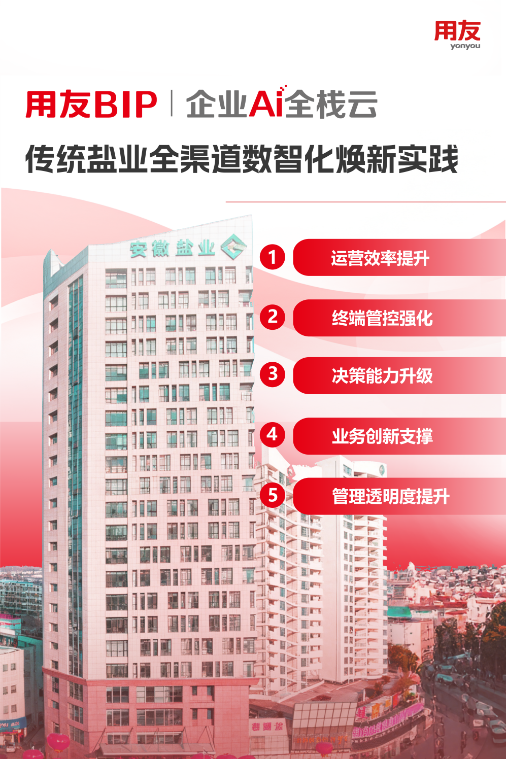 依托用友BIP企业AI全栈云,安徽盐业在运营效能、业务管控、决策支撑、创新发展等方面实现显著提升: